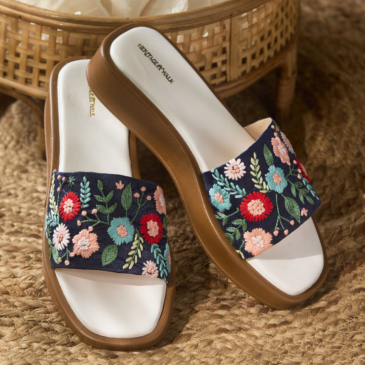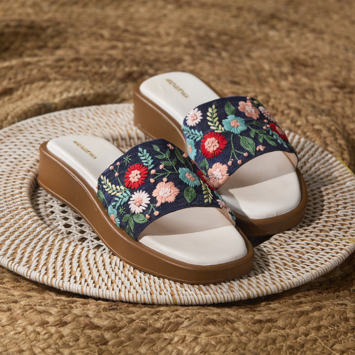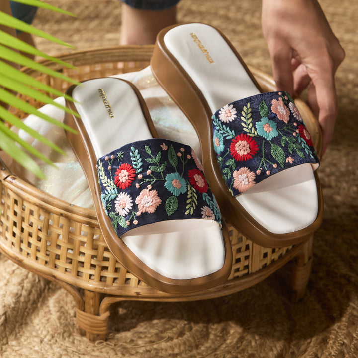 Slip into the one-inch comfortable sliders that feel like a hug to your feet. The intricate threadwork adds a lively yet elegant flair, making them perfect for both casual and special occasions. Lightweight, versatile, and easy to wear.